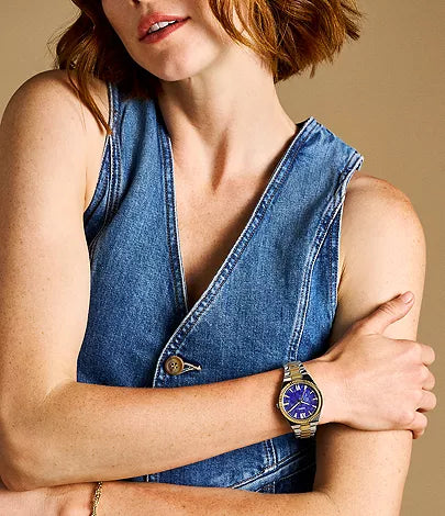 Scarlette is designed for the stylish go-getter. With a genuine lapis stone dial, gold-tone topring and two-tone stainless steel bracelet, it's a stunning, one-of-a-kind timepiece.