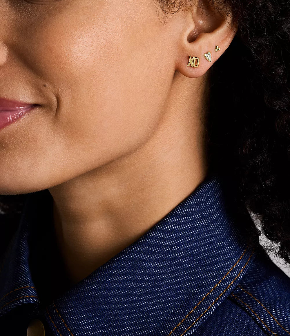 Elevate your style with this All Stacked Up earring gift set. Featuring a heart stud, XO stud, and trio stud, this love filled trio offers major accessorizing potential. Vibrant and modern, they're crafted with brass, steel, and sparkling accents. Wear them stacked or solo—the possibilities are endless.